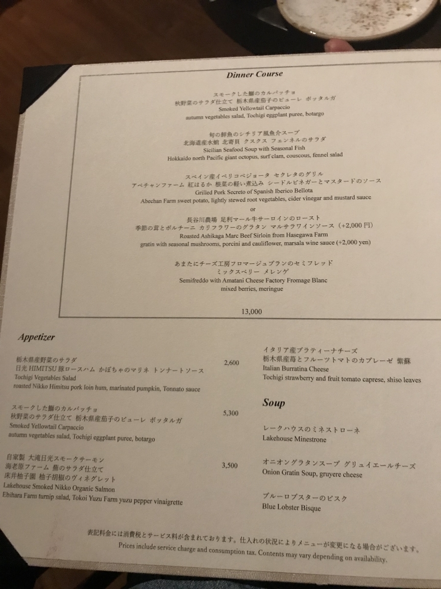 食事はコースでなくアラカルトでお願いしました。一皿がかなりボリュームがあり、シェアして食べるのがおすすめです。そう考えると、レークハウスのアラカルトはとてもお得だと感じます。